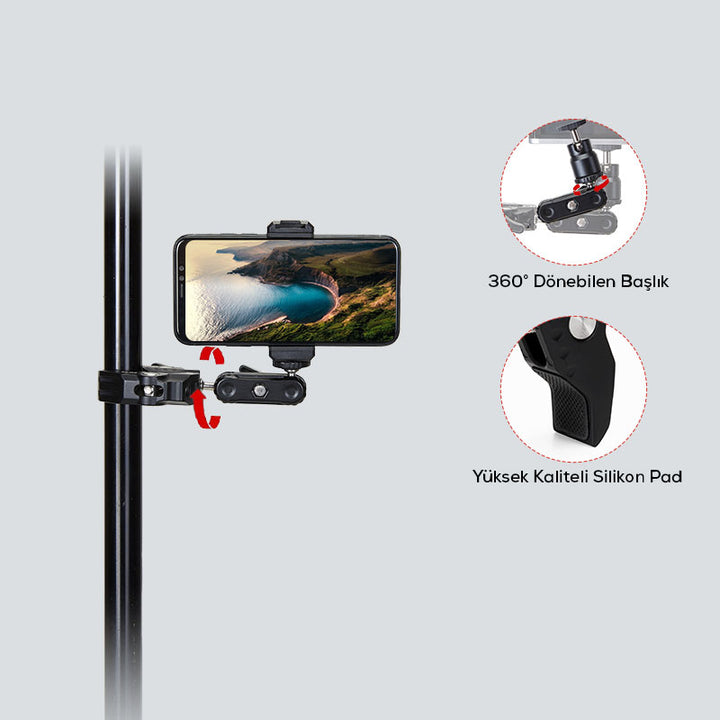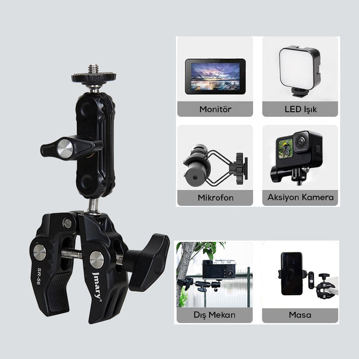 Jmary SR-56 Tablet, Telefon, Monitör, Led, mikrofon,Işık Tutucu Ayarlanabilir Alüminyum Kelepçe